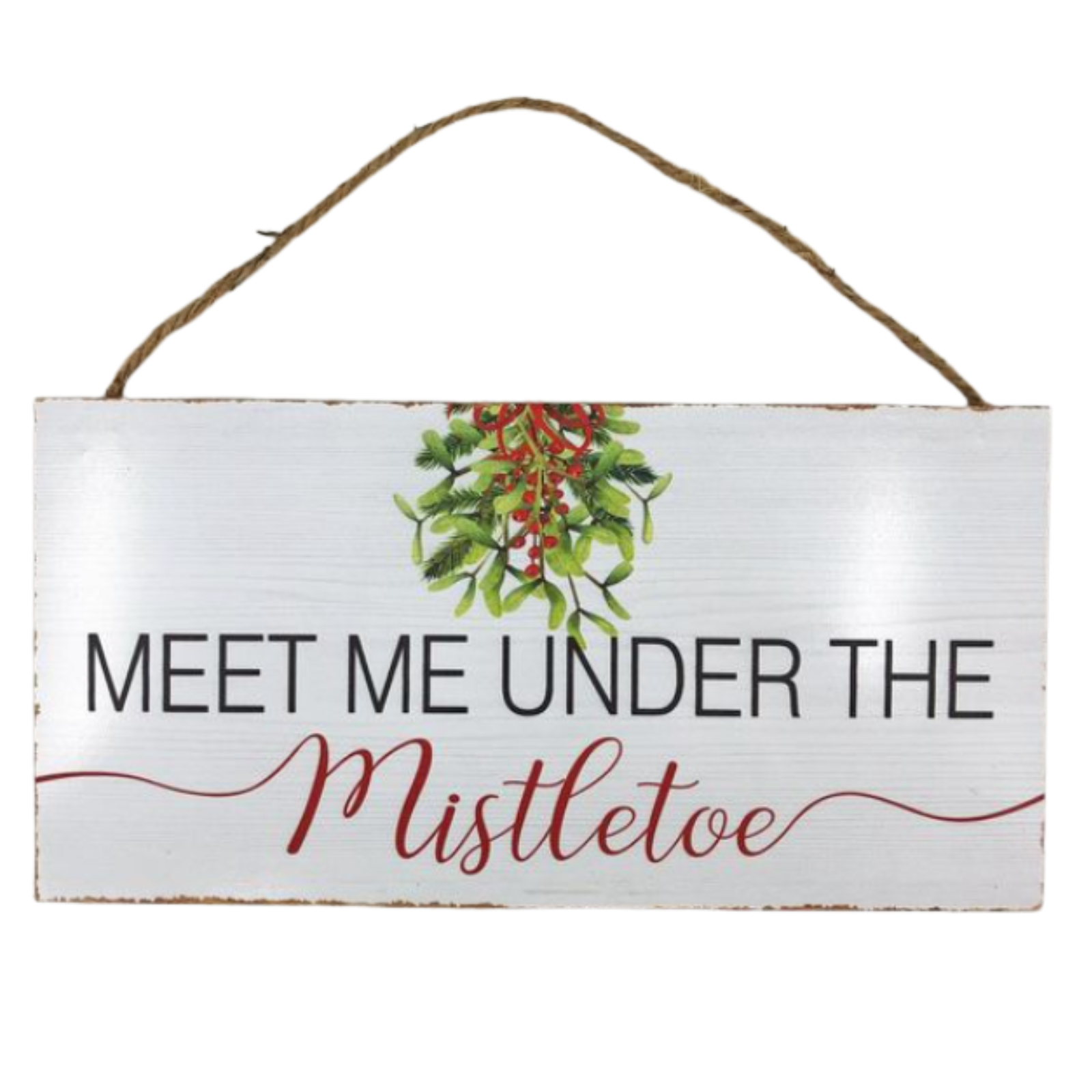 Festive hanging sign crafted from durable wood, featuring a charming holiday-themed design. Complete with a rustic rope hanger, this piece is perfect for adding seasonal cheer to doors, walls, or entryways.