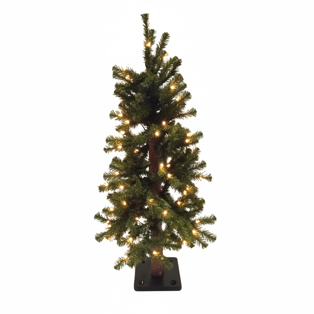 Add classic holiday charm with this 24-inch Alpine tree, featuring 75 lush tips and 50 lights. Its natural slim profile is perfect for creating a festive display in smaller spaces, entryways, or tabletops. Complete with a sturdy base, this tree offers a warm glow and timeless holiday appeal.