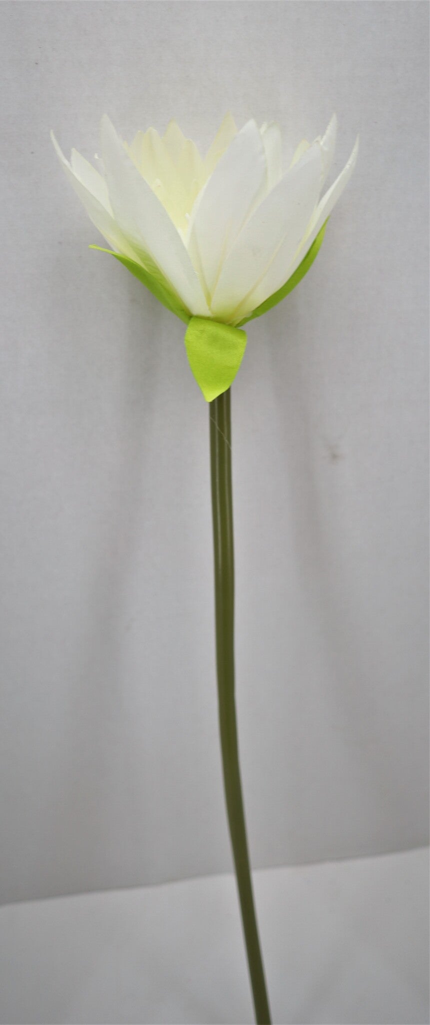 The Artificial Water Lily Stem features a beautifully crafted white water lily with green accents on a slender stem. This elegant piece is perfect for adding a tranquil and serene vibe to floral arrangements, centerpieces, or decorative displays. Ideal for both home decor and event styling, it offers the timeless beauty of water lilies without the need for maintenance.