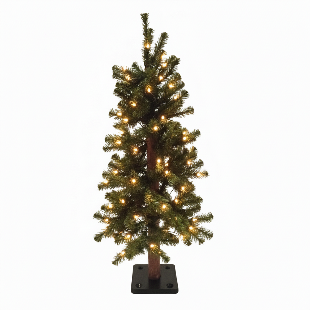 Bring a warm holiday glow into your home with this 4-foot Alpine tree, beautifully lit with 100 clear lights. Its slim, natural design makes it an ideal accent for corners, entryways, or smaller spaces while still offering a festive presence. Complete with a sturdy base, this tree is perfect for creating a classic and cozy holiday display.