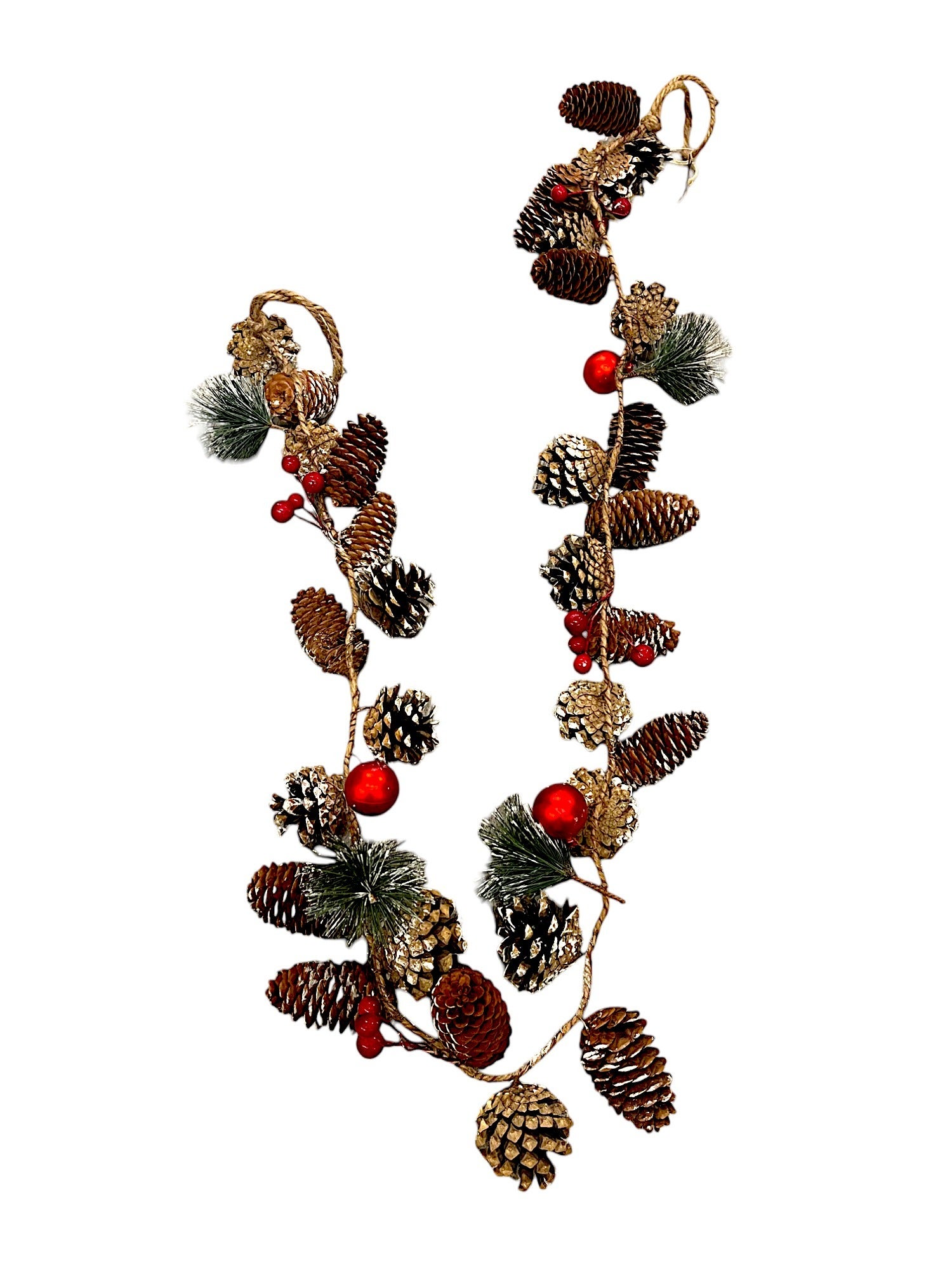 Natural pinecones, bright red berries, and faux greenery are strung along a 71-inch garland, bringing a rustic woodland charm to your holiday decor. Perfect for draping over mantels, stair railings, or doorways for a festive touch.