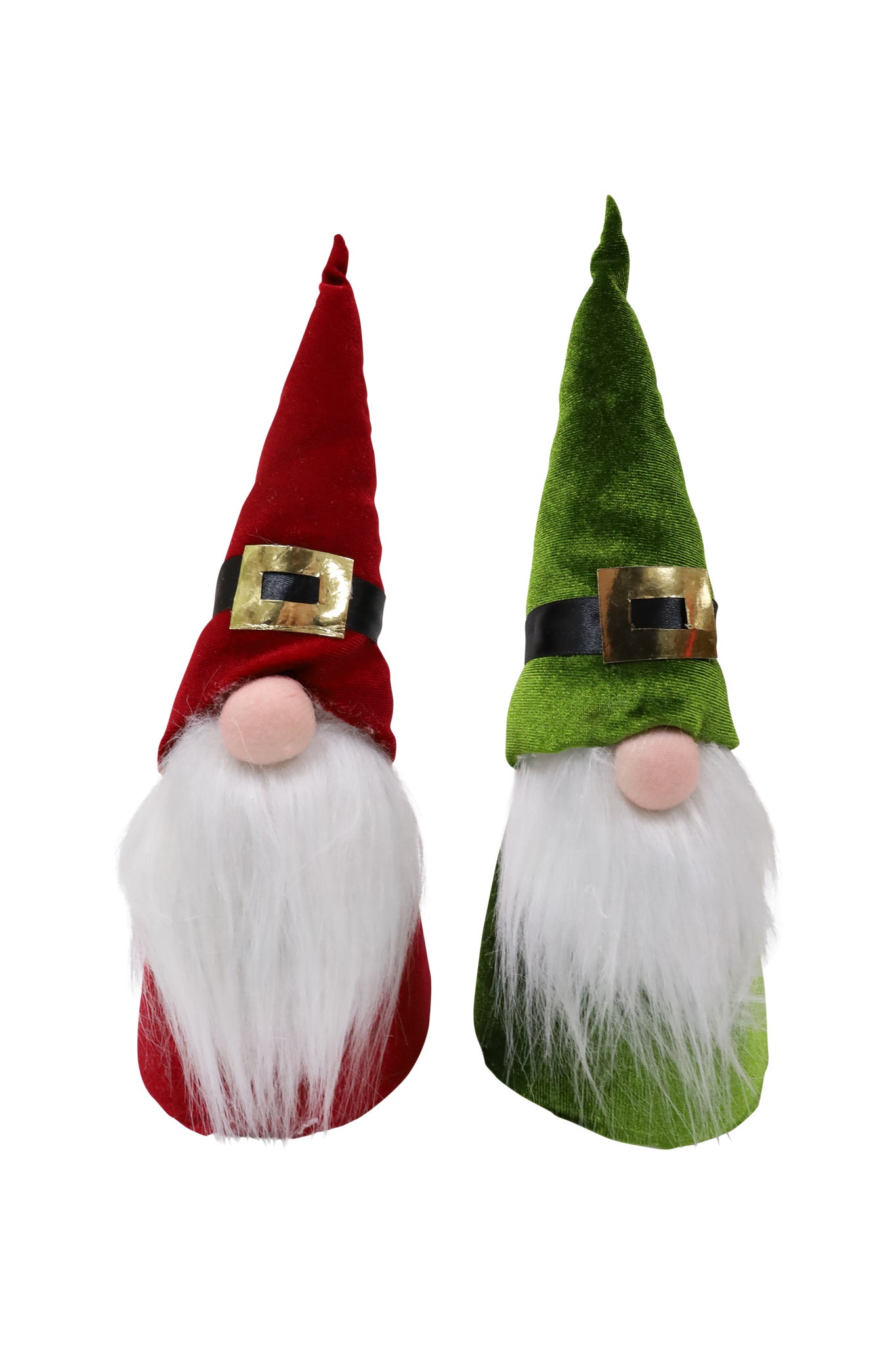 These festive gnomes bring a playful touch to holiday décor with their tall pointed hats, fluffy white beards, and classic Santa-style belts. Perfect for shelves, mantels, or tabletops, they add warmth and whimsy to any seasonal display.