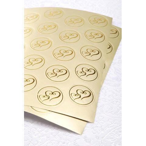 Gold Double Heart Envelope Seals, 50ct.