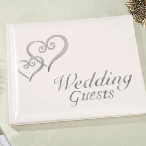 - The word "Wedding Guests" with hearts is embossed on the cover